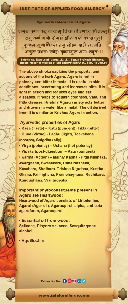 - Sheet Shamana- Agaru is a drug with cold potency.