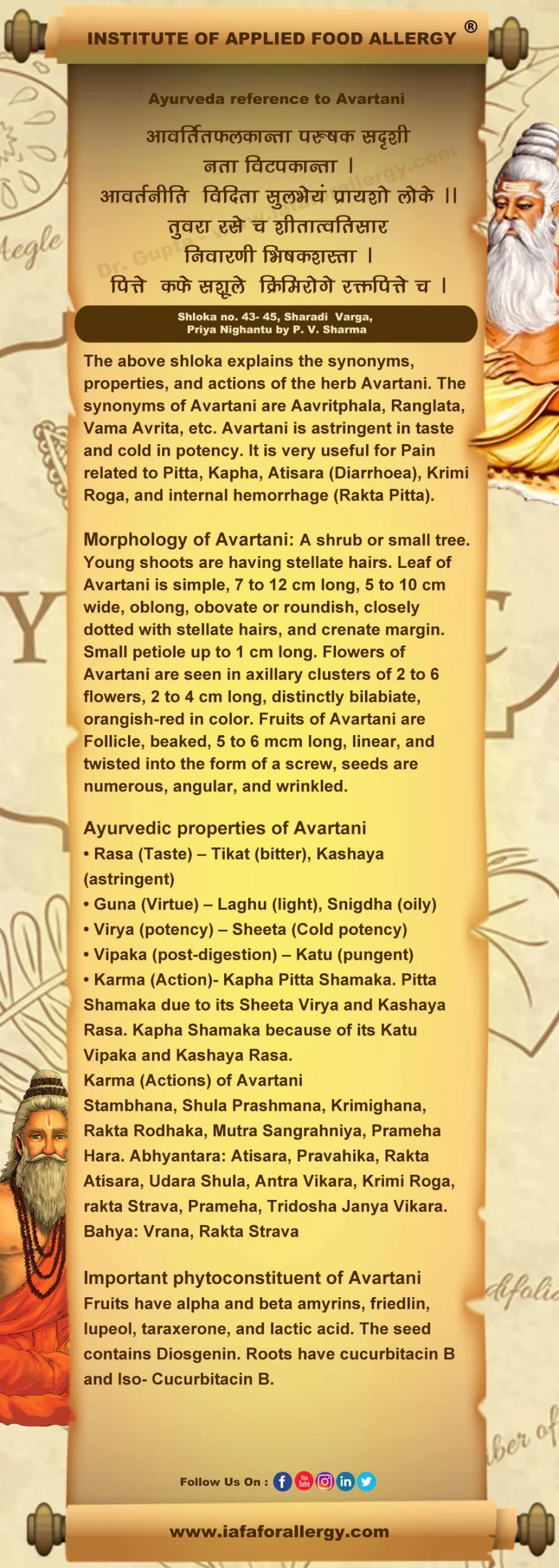 Other synonyms of Aavartini are Ranga Lata, Tindukini, Vibhandi.
